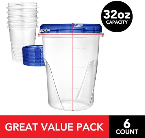 Organize your kitchen and keep meals fresh with the Stock Your Home 32oz Plastic Containers. These spacious quart-sized containers are perfect for storing large portions, whether it’s leftover dinners, soups, or family-sized meals. The airtight twist top lids seal in freshness, preventing leaks and food spoilage, so you can confidently store your dishes in the fridge or freezer.