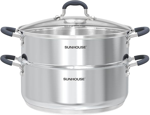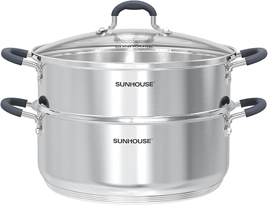 Sunhouse’s stainless steel steamer pot combines durability and versatility for efficient, healthy meal preparation.