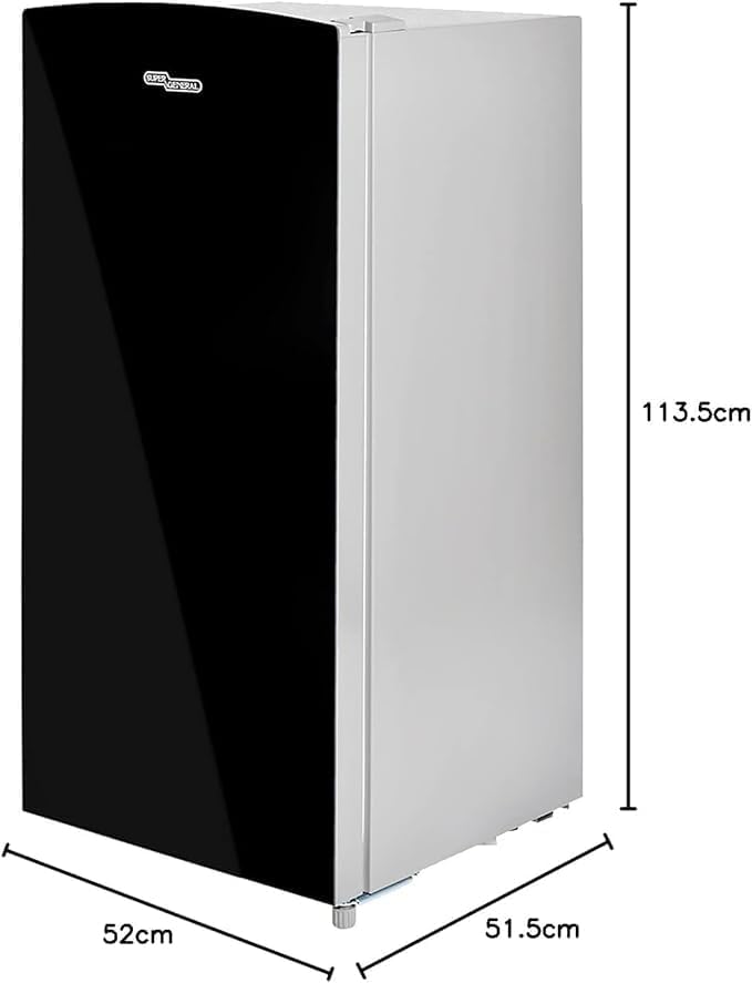 The Super General 170 Liter Refrigerator combines sleek aesthetics and practical functionality in a space-saving design. Featuring a black glossy mirrored door and grey body, this fridge seamlessly fits into kitchens, bedrooms, offices, bars, and hotel rooms. Its 270-degree door opening enhances accessibility, making it easy to clean and use in any setting.