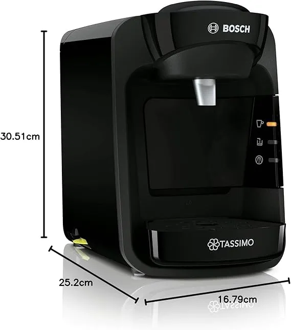 • Finished in a sleek black design and built with trusted Bosch quality, the Tassimo Suny delivers reliable performance with energy-saving auto shut-off for efficient use in modern UK kitchens.