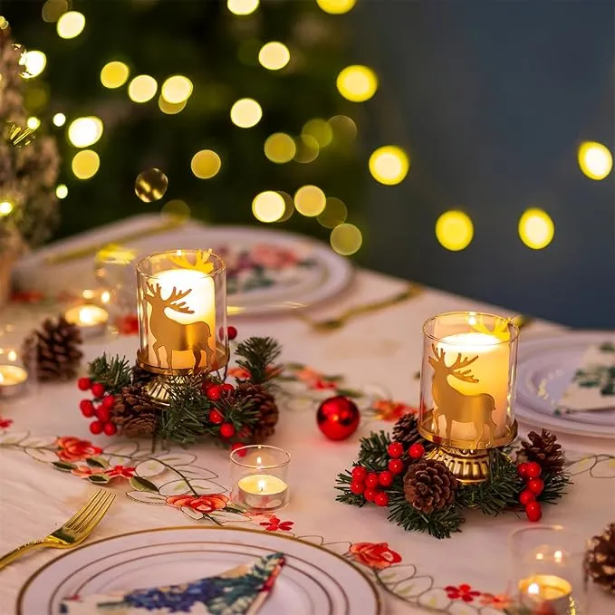 Elegant Festive Design: Sziqiqi Tealight Candle Holders set of 2 features a stylish gold finish with stag-inspired accents, creating a warm and inviting atmosphere for Christmas tables, mantles, and fireplaces.