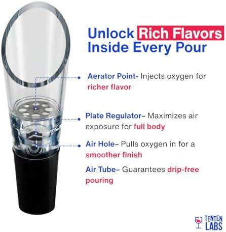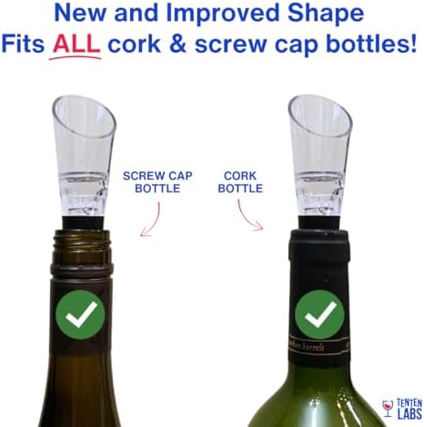 Designed by a sommelier, the TenTen Labs Wine Aerator Pourer uses the Bernoulli effect to perfectly aerate your wine, unlocking its full aroma and flavor with every pour. This premium aerating spout infuses the optimal amount of oxygen into your wine, allowing you to enjoy the subtle nuances and improved taste instantly. Whether you are unwinding after a long day or hosting a gathering, this aerator elevates every glass.