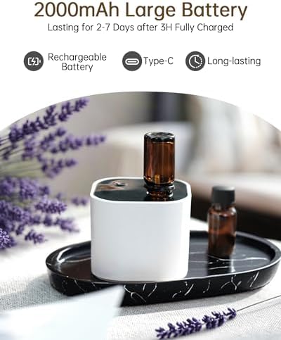 This diffuser uses advanced cold air diffusion technology that efficiently transforms pure essential oils into a soothing mist without any heat or water involved. Enjoy the convenience of cordless, battery-operated function featuring a powerful 2000mAh rechargeable battery that lasts up to a week on low intensity and charges fully in just 3 hours via USB-C. Its innovative dropper plug design supports most 5 to 50ml essential oil bottles without the hassle of removing caps.