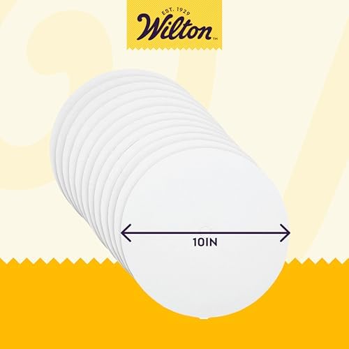 Ensure professional presentation and stability for your cakes with Wilton’s 10-inch white round cake boards. This 12-piece pack is greaseproof and perfect for 8-inch or 9-inch cakes.