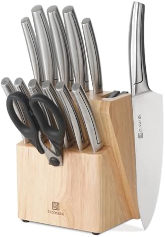 Experience ultimate sharpness and effortless slicing with the ZUNMARK Professional 13 Piece Kitchen Knife Set. Crafted from high-quality 420J2 stainless steel, each blade maintains its razor-sharp edge for precision cutting, whether you’re preparing a simple meal or a gourmet dish. Corrosion-resistant and easy to maintain, this set stands up to daily kitchen use and retains a polished shine with just hand washing and drying.